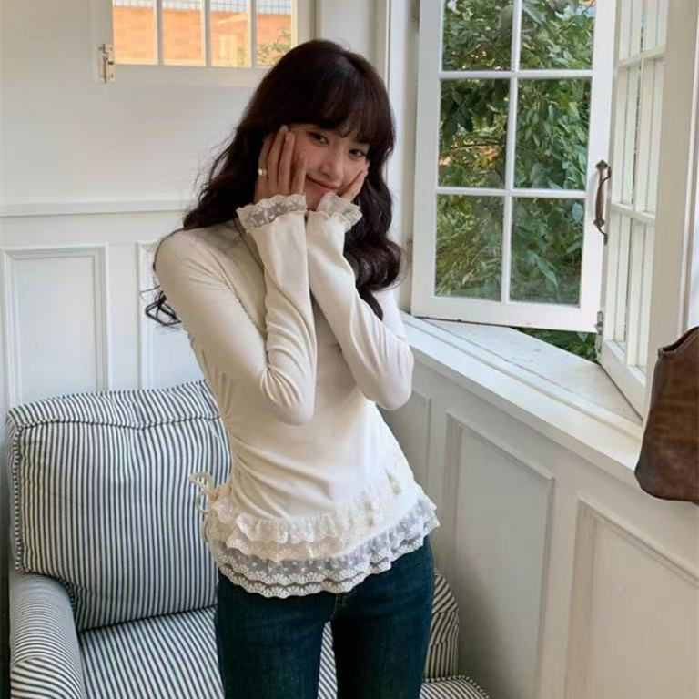 Slim-fit Elastic Flower Lace Steel Ring Fishbone Top